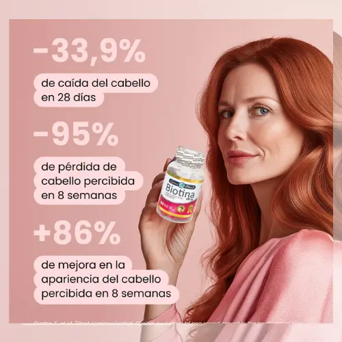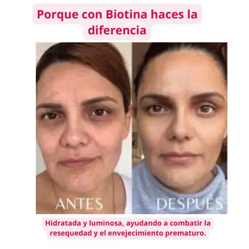 Ofrece un enfoque integral: resistencia capilar (biotina) e hidratación y firmeza cutánea