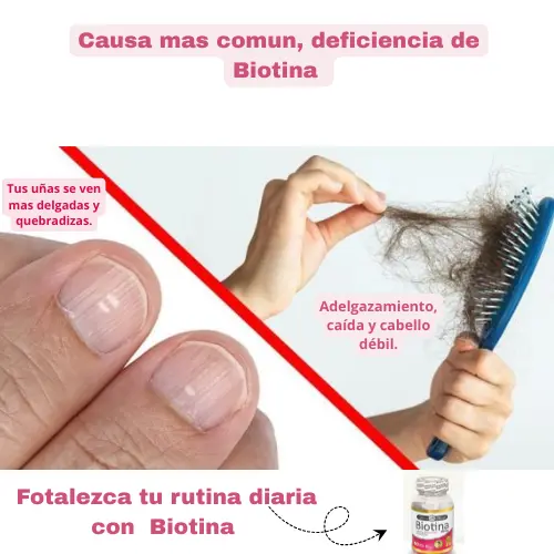 Biotina: Mejora la fuerza del cabello y las uñas, apoyando la producción de queratina, una proteína clave para estas estructuras.