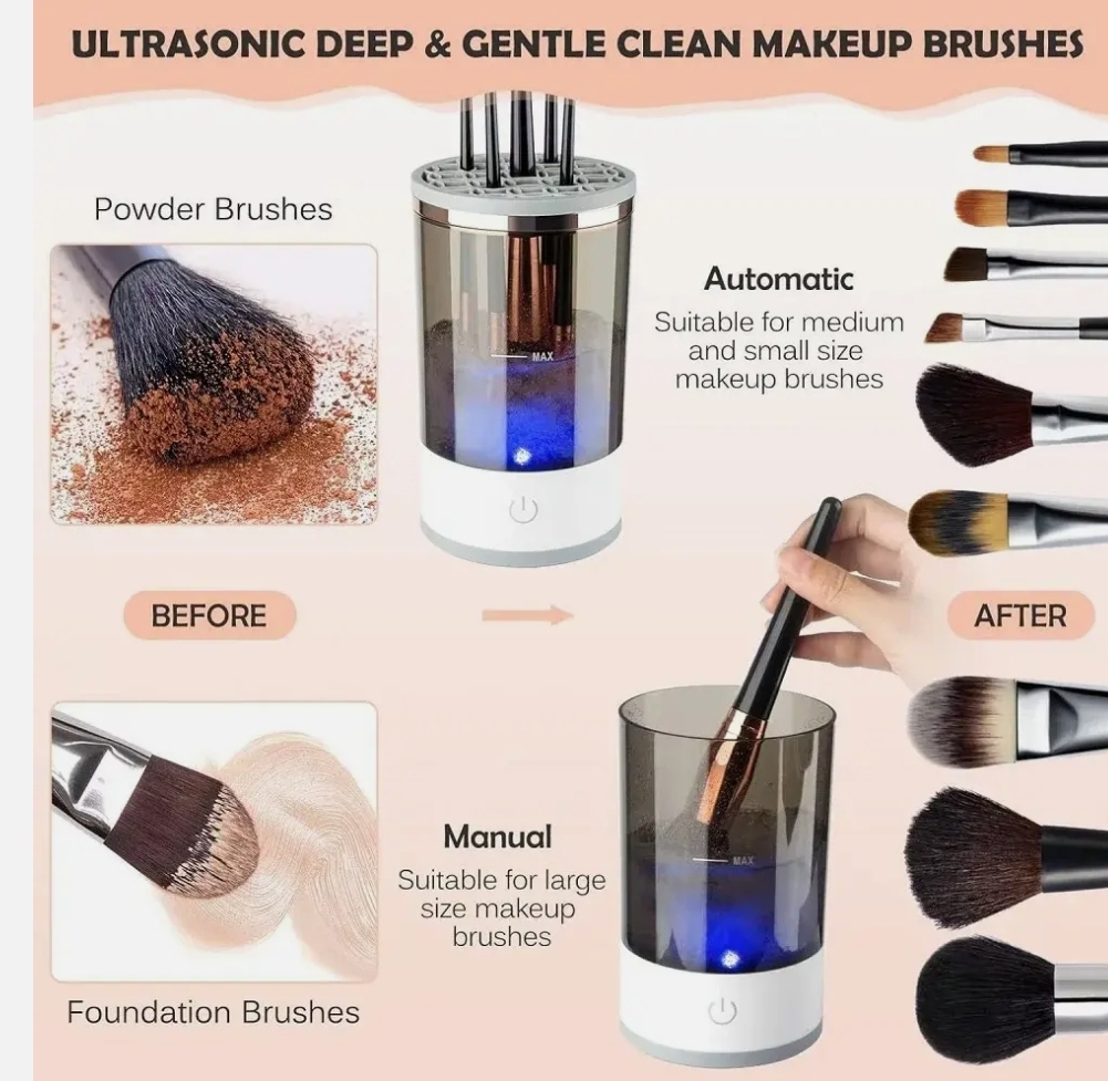 El Limpiador Eléctrico de Brochas de maquillaje ahorra tiempo y es fácil de usar.