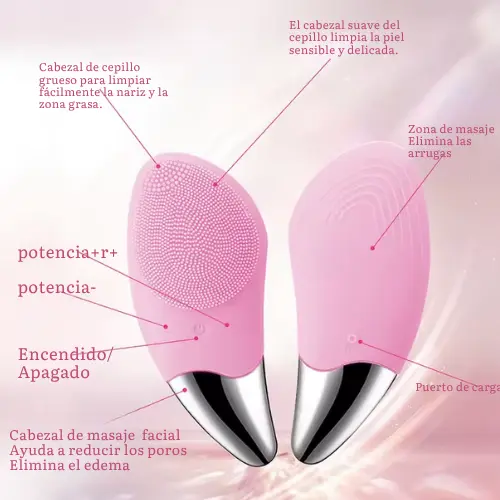 La limpieza manual solo limpia la superficie, y pueden quedar suciedad y maquillaje en los poros. Con el diseño ondulado del CEPILLO, mas las primeras áreas faciales más grandes, limpiaran efectivamente el sistema de limpieza ajustable de la cara.