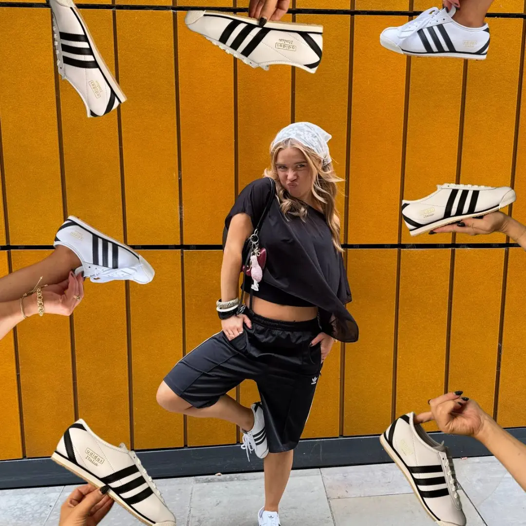 “Luce tan sofisticada como si llevaras tacones, pero con la comodidad de: Las Adidas Samba son el equilibrio perfecto entre estilo clásico y elegancia urbana.